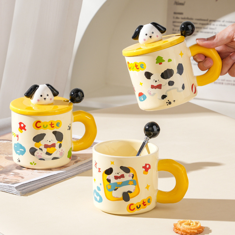 이 컵은 뚜껑에 귀여운 강아지가 올라가 있어요.